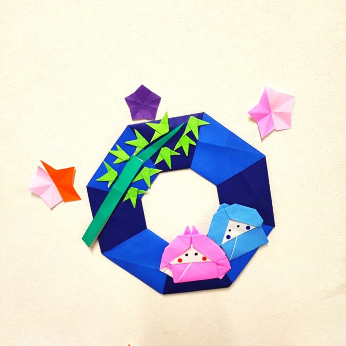 ひとつひとつ細かな作業でしたが丁寧に仕上げてくださいました。七夕のリースも小さな二人がとてもキュートですね😄
