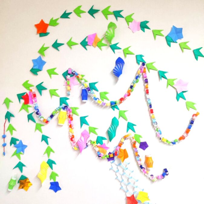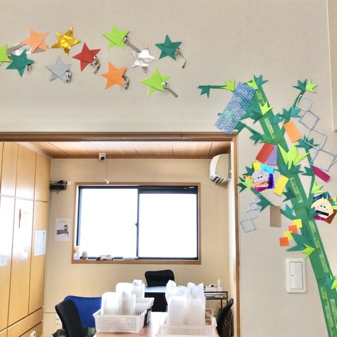 ストーリーの壁面には素敵な折り紙の七夕飾りがたくさんありましたよ!