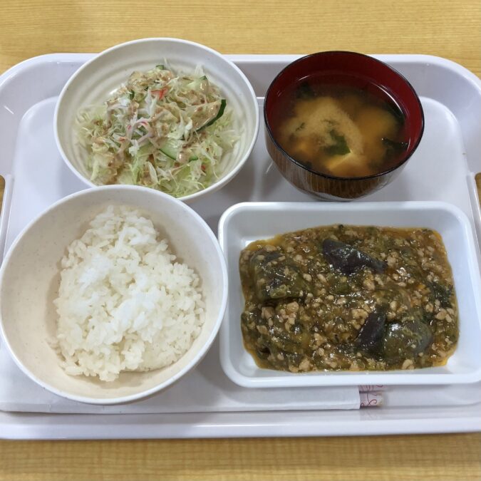 プリッとジューシーに仕上げた鶏の照り焼きは、甘辛だれがしっかり絡んでご飯がすすむ味わいに。生姜の風味をきかせた麻婆茄子は、辛さをおさえて食べやすく、ご飯にのせても美味しいと好評でした😊