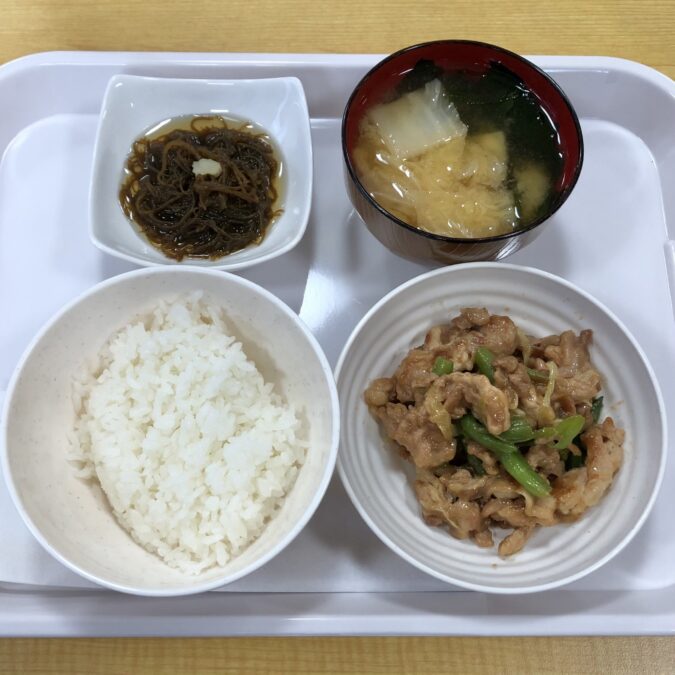 あっさりとした豚と小松菜の煮物には、やさしい出汁の風味がしみわたり、どこかほっとする味わいでした。副菜の切り干し大根や、さっぱりとしたもずく酢も食卓にメリハリを添えてくれました。