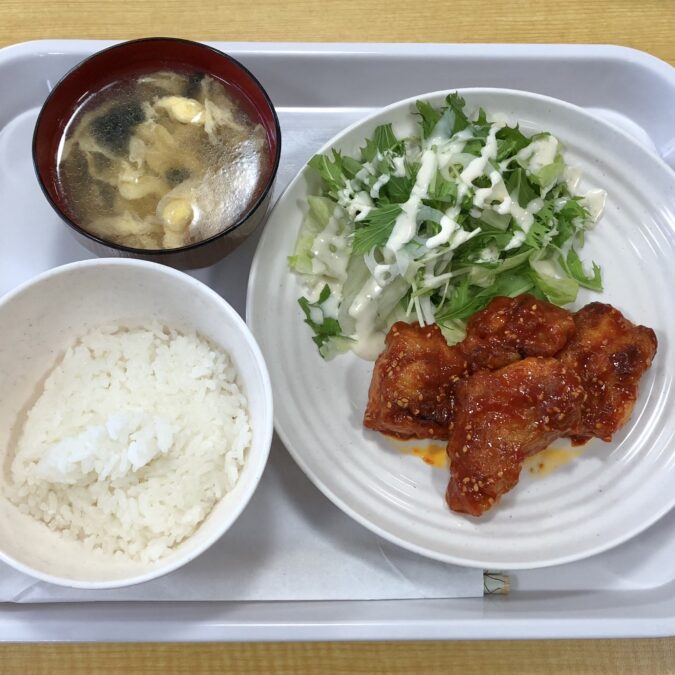 スタートは、しっとり柔らかい鶏もも肉に、甘辛いコチュジャンだれをたっぷり絡めたヤンニョムチキン。ピリッとした香りと味わいで、ご飯がすすむ韓国風メニューでした😉